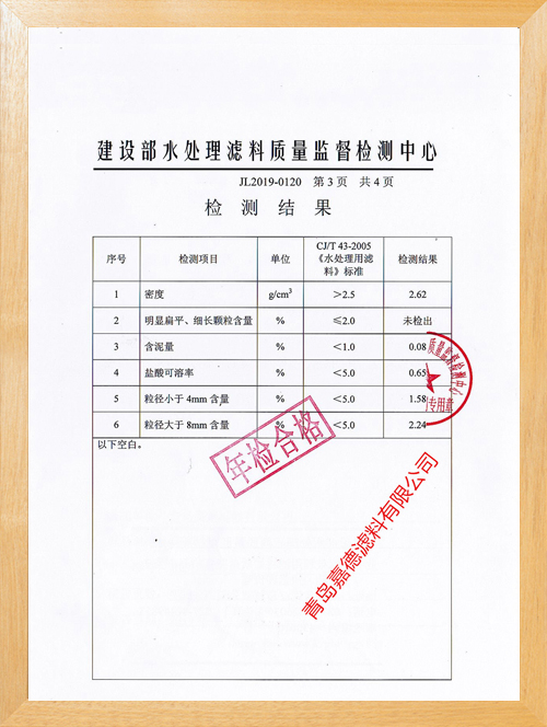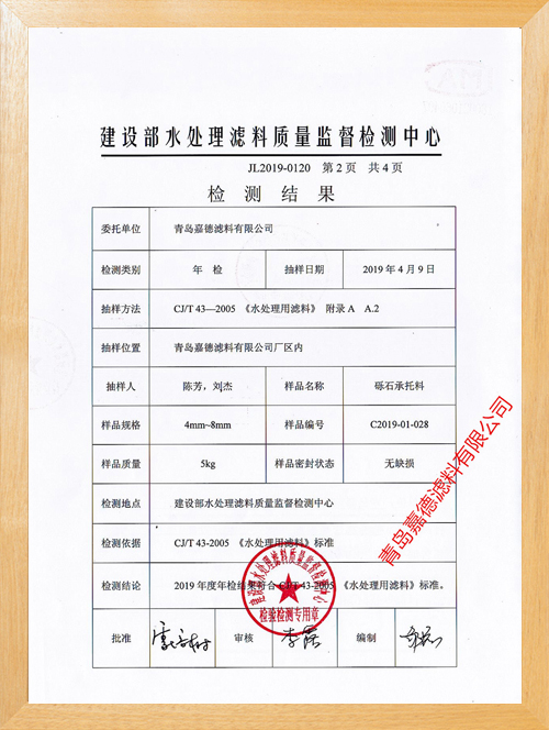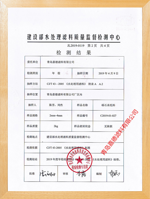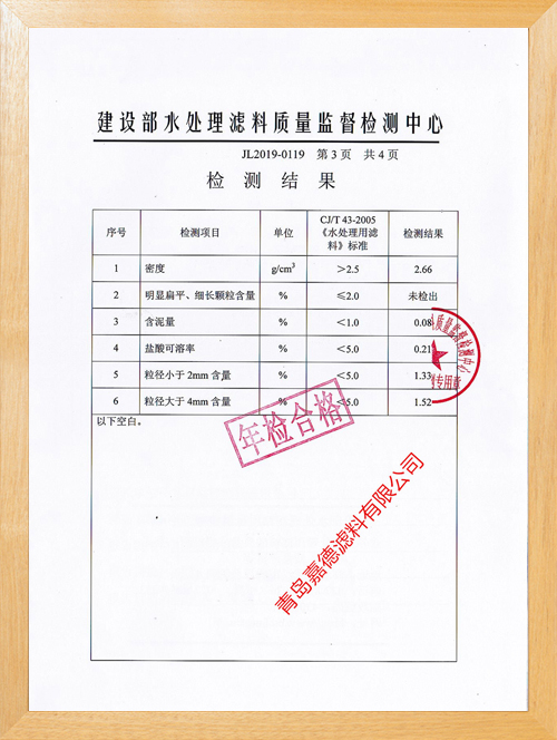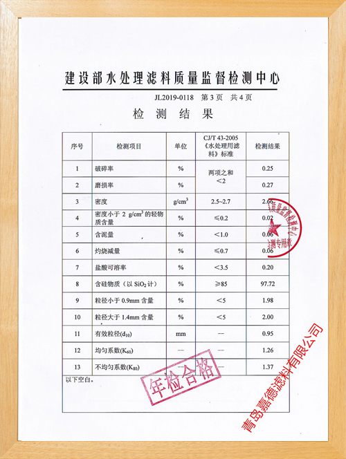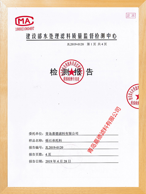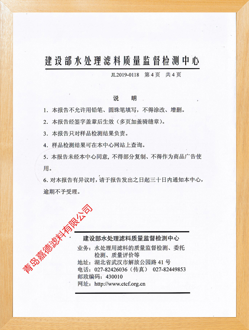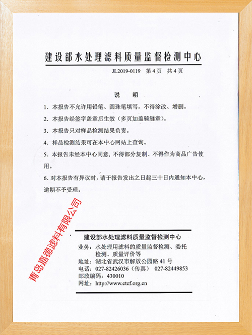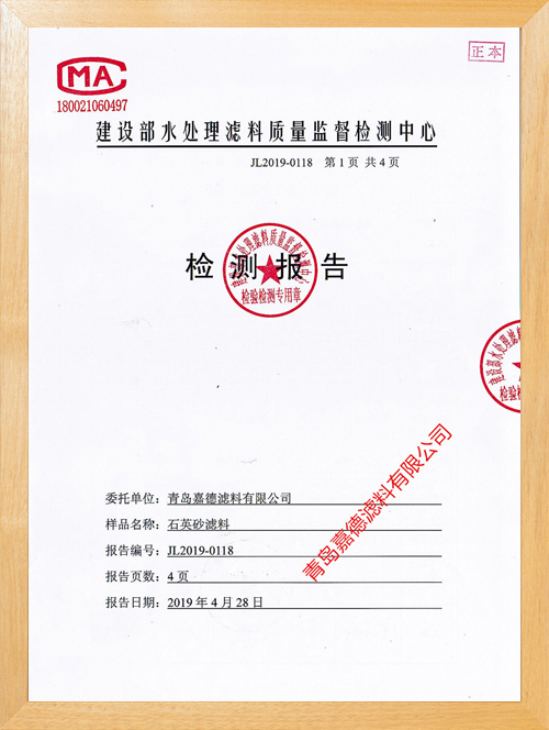 建設(shè)部水處理濾料質(zhì)量監(jiān)督檢測中心檢測報(bào)告